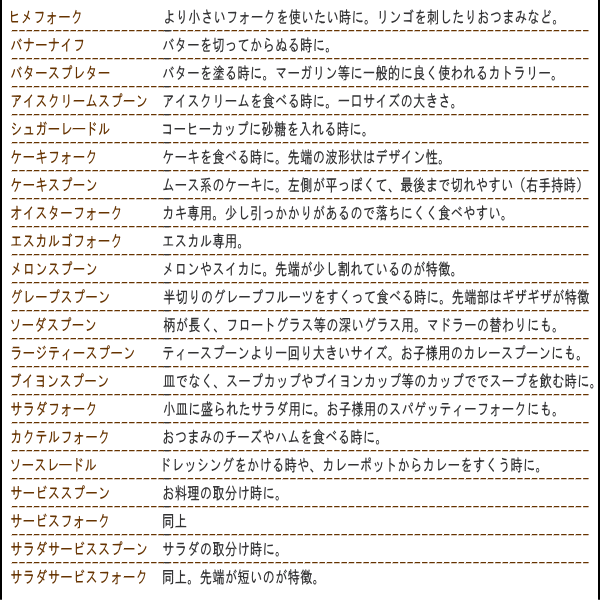 ●業務用以外でも、使用頻度の高い小さめのスプーンやパスタ用 のフォーク、カレーライス用のスプーンなどなど、一般のご家庭 でも おすすめのです。